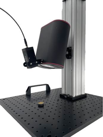 It consists of two independent products AURALIS Light Source and SAMPLER Accessory. Designed to be fiber-coupled with MIDWAVE Spectrometer, this interface allows you to perform reflection measurements at a 15° angle, 150 mm distance. Mounting NLIR’s REFLECTION Interface on a stand in your production line allows you to perform reflection measurements at scale, in real time.